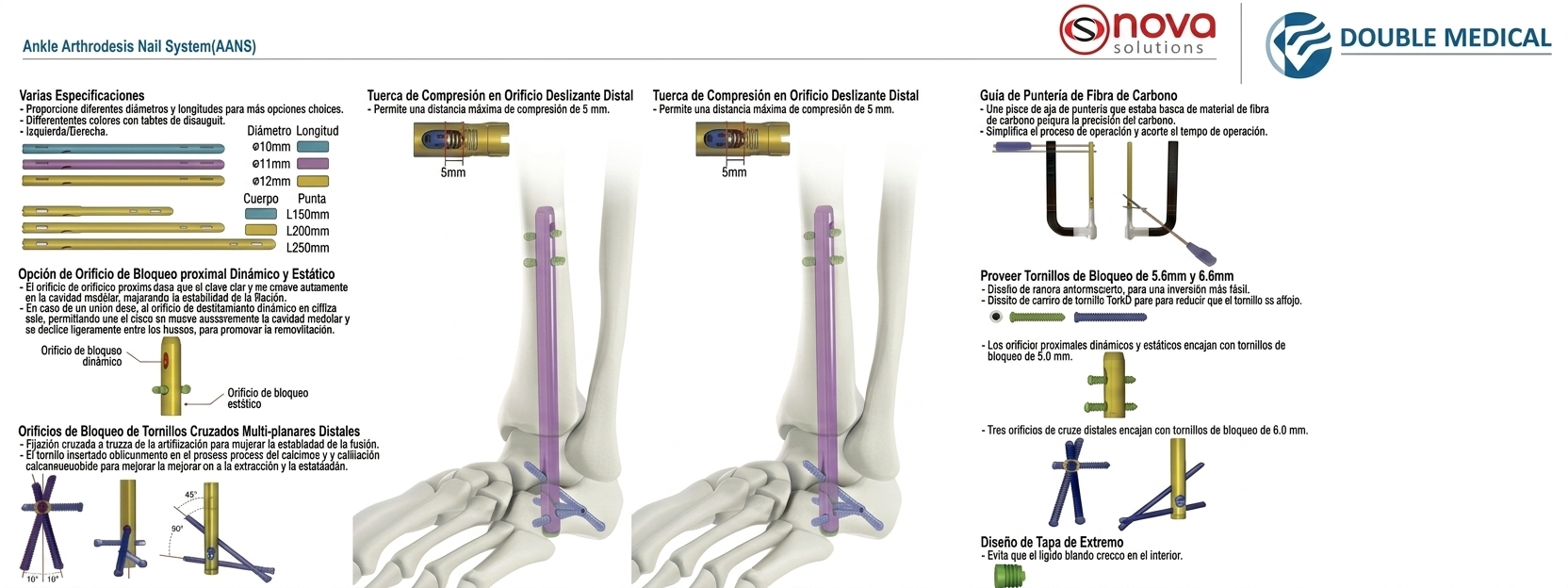 El clavo para artrodesis de tobillo está diseñado para deformidades y artritis graves del pie y el tobillo.
